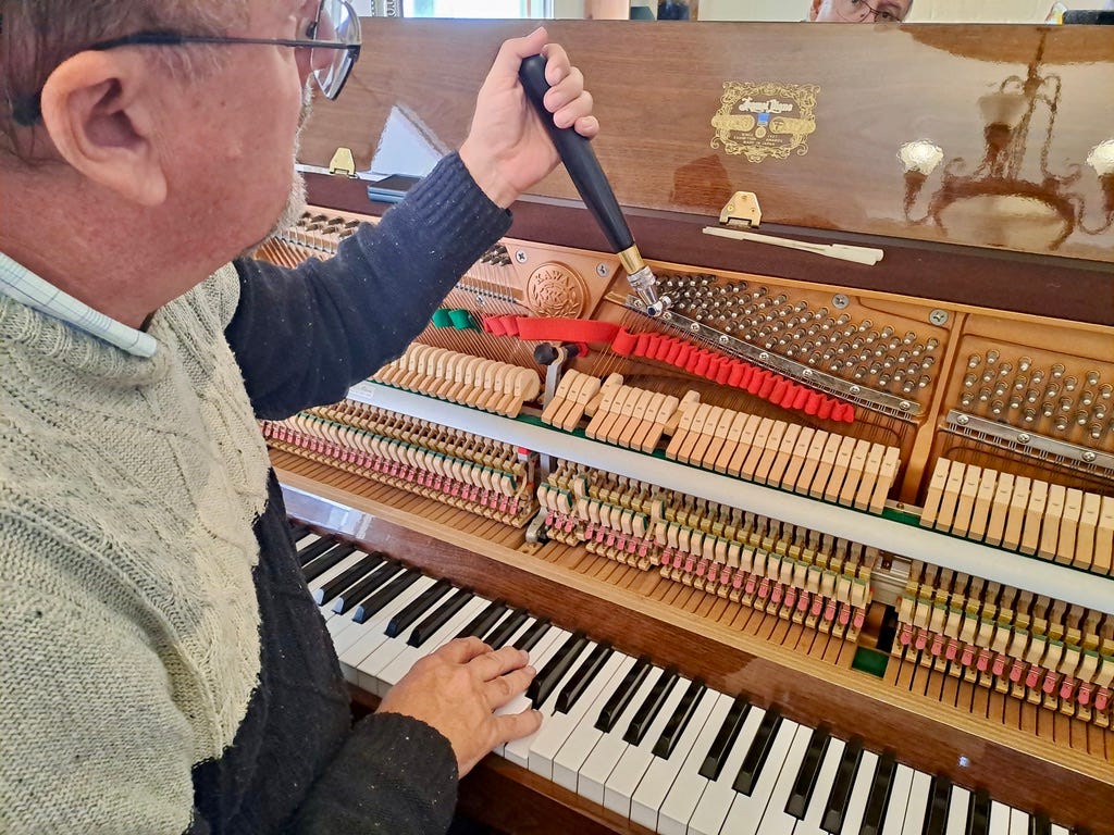 Getting our new/old piano tuned. “Look after this one and it’ll last you the rest of your life.” – Glen, the piano tuner (Belle Butler)