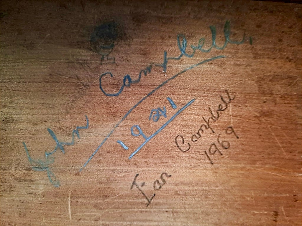 Tucked away in my grandfather’s desk, a piece of wood signed by him in 1941, then by my father in 1969 (Belle Butler)