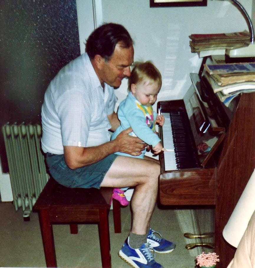 Original owner of the piano, Carole’s father, with his granddaughter (supplied)