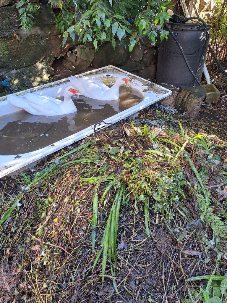 “The weeds the bush care group and I pull out go into that pile and what the ducks don’t eat they stomp on and that goes down to compost, which then goes on the garden. It’s a little permaculture kind of thing.”