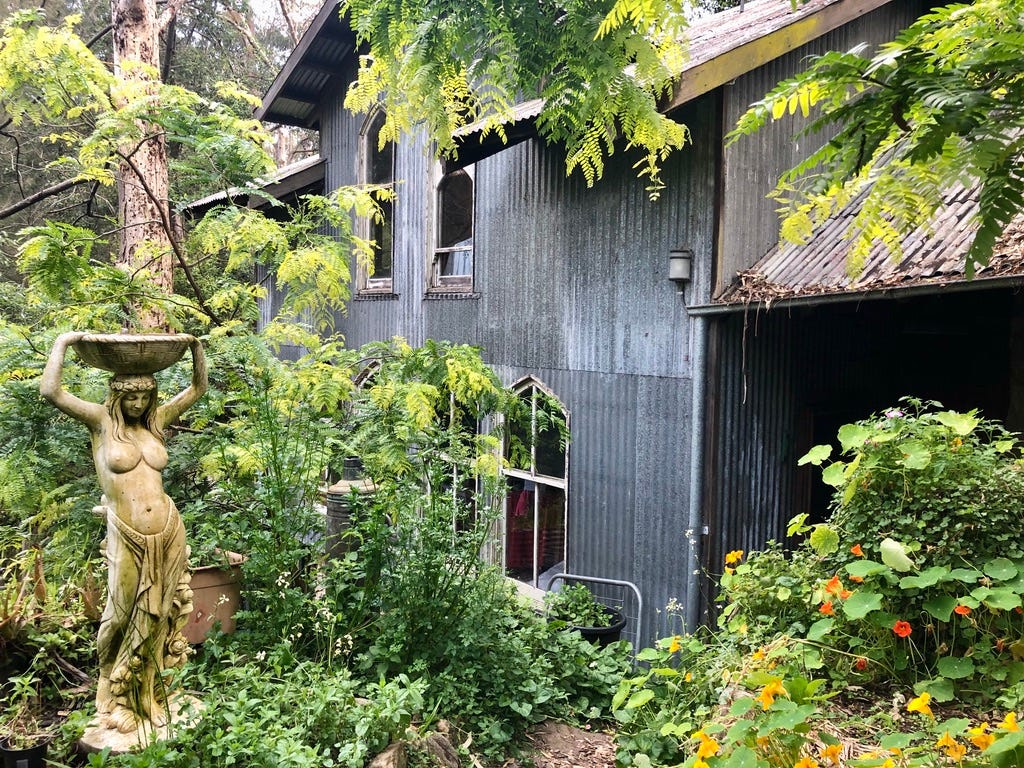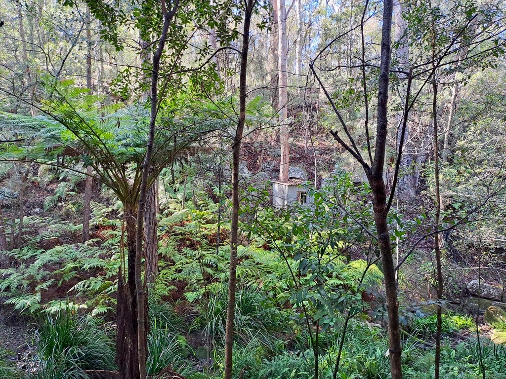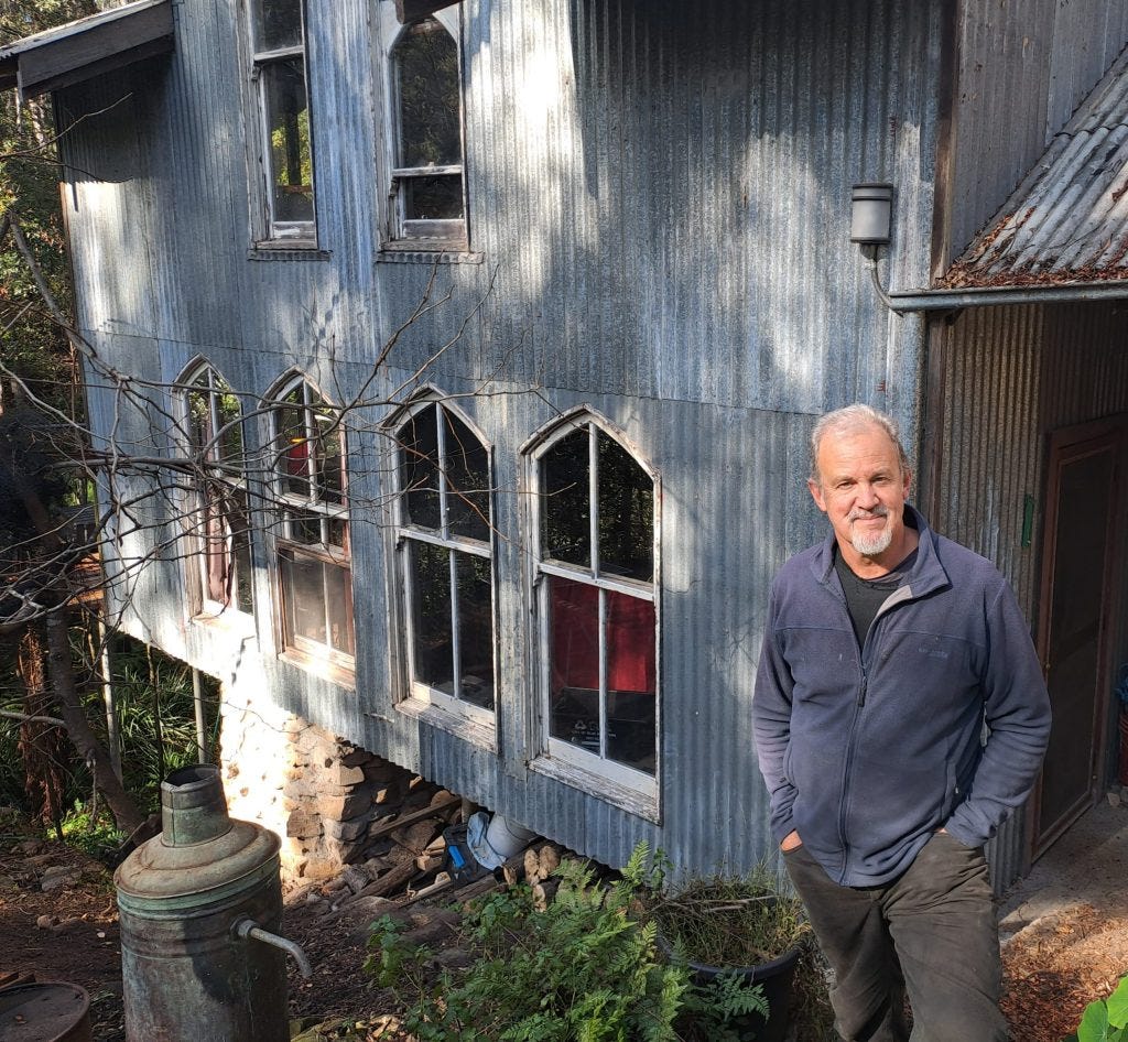 Fifteen years ago, he started a bush regeneration group with the support of a Blue Mountains City Council Bush Care Officer. He joins neighbours once a month managing weeds along Zora Creek that runs behind his studio.