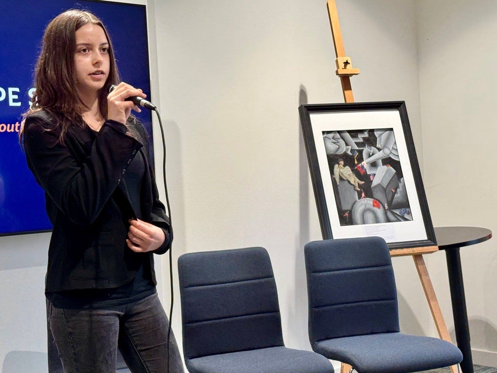Peace Collective member Bruce Cornwell described past successful protests, and discussed potential future actions. Emerging activists, too, stood up to be counted: Year 11 student, Matilda Emmerich, already an artist and poet, presented her work, Where Hope Sits, giving older activists hope for the future.