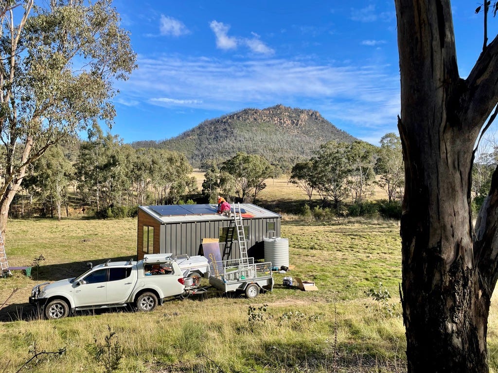 Adding solar panels to the Wolgan tiny house (Ross and Olwyn King)