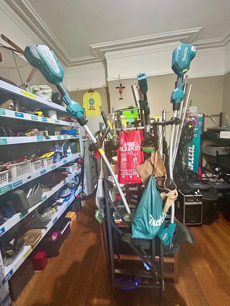 Toolo is a registered charity and uses membership fees to pay the rent and utility bills. Anything left over goes to new tools, purchasing quality products and favouring reputable brands, such as Makita (those whipper snippers again) with rechargeable batteries, all regularly tested and tagged.