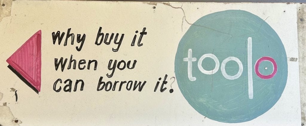 That’s where Toolo comes in. It’s a community where we can pool our resources. The reasonable membership fee allows us to borrow a generous 20 items a week.