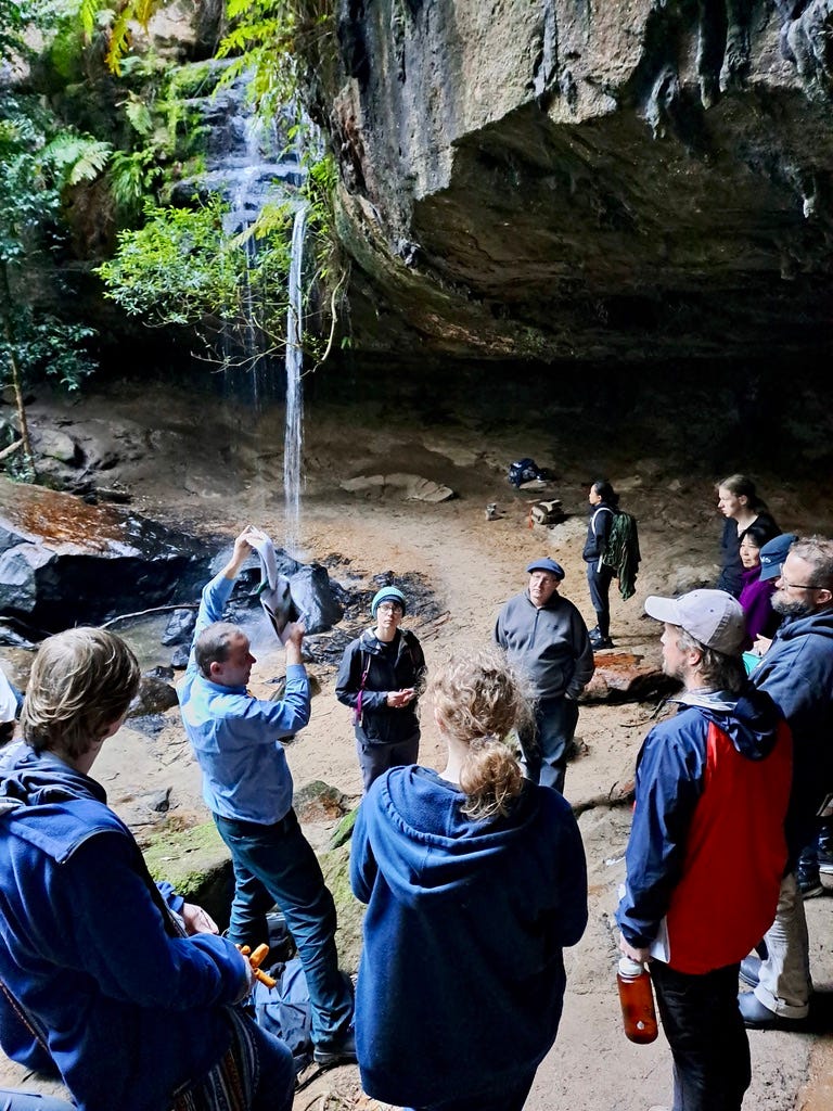 During the walk a young volunteer, barely a teenager, shares his knowledge about the geology of the area, others pipe up about their experience in bush regeneration, and everyone, including Nathan, stops to listen and learn. The guided tour becomes a collective sharing of experience and knowledge. I suspect this kind of respect for all and openness of the group is also to thank for the high attendance at the event. “Everyone knows things, and has some area of interest and expertise, and it is always good when different people contribute where possible. It is part of teaching and learning,” says Nathan.