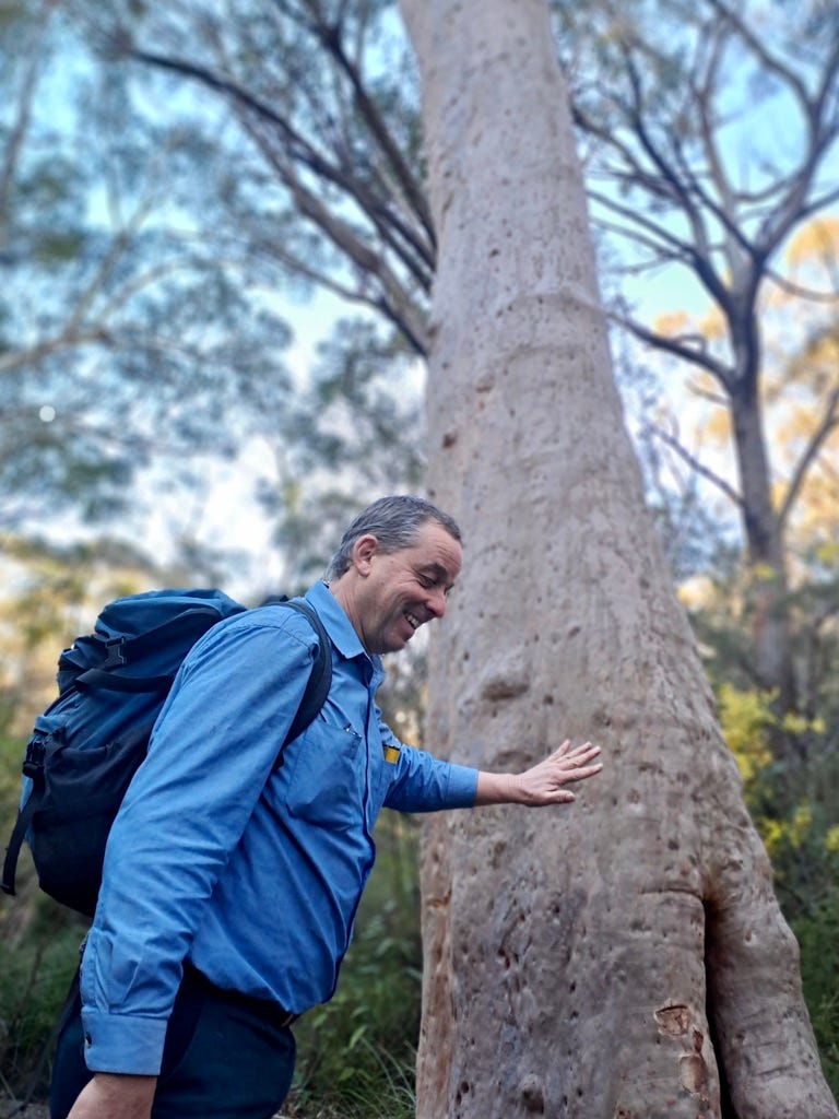 Nathan tells me he loves teaching and guiding: “The whole point is getting it (acquired knowledge) out there.” And this is made obvious by his enthusiasm for sharing local information during the walk. He teaches us how to identify an Apple Eucalypt, finds some Mountain Pepper for us to taste, points out Coral Ferns that indicate the location of a hanging swamp, and shows us where to return in the night if we would like to see glow worms.